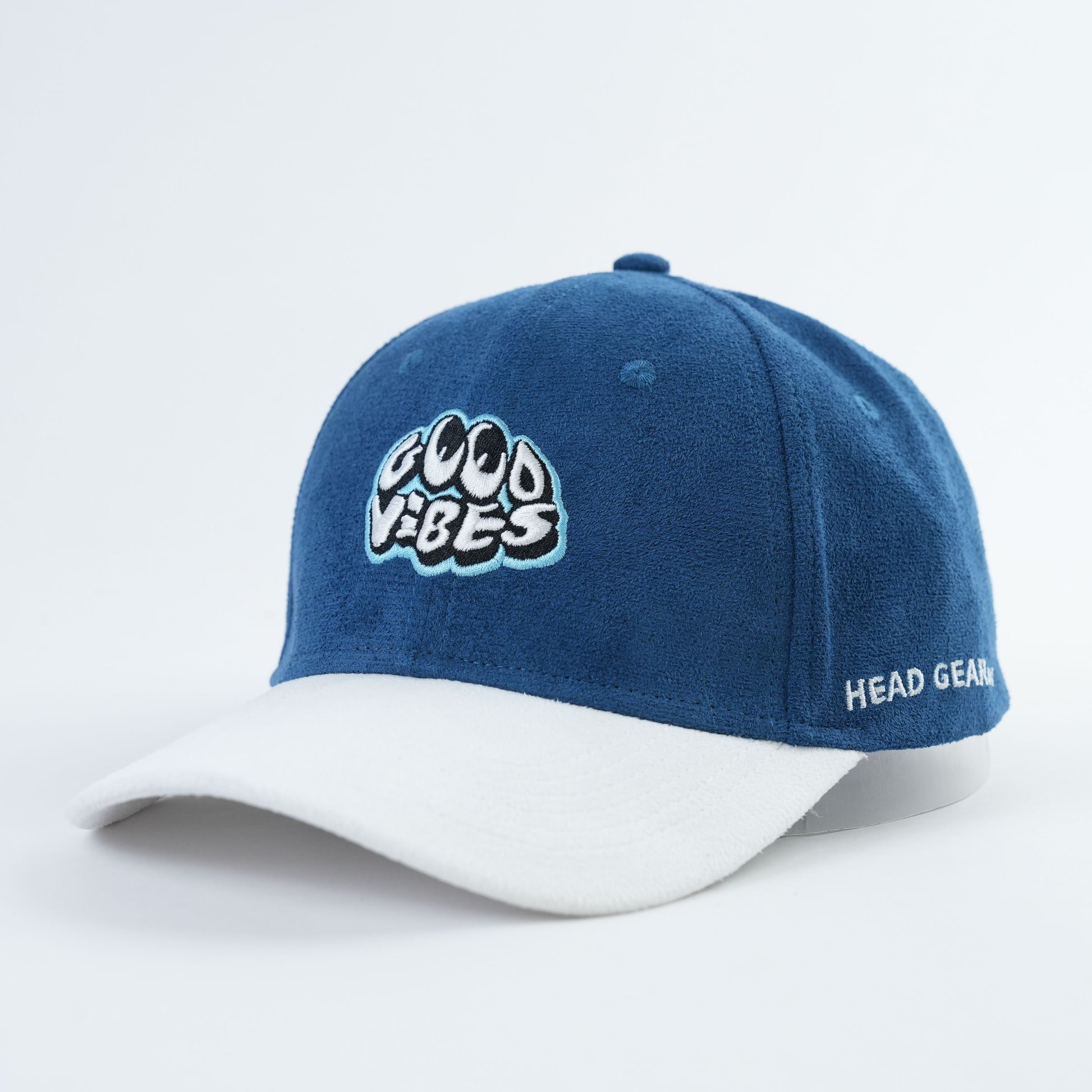 Spread positivity with the Head Gear AU “Good Vibes” Cap – a playful and stylish piece crafted for modern streetwear. Featuring a blue suede crown paired with a white suede visor, this cap brings both contrast and character to your look. The front panel is decorated with the bold “GOOD VIBES” embroidery in a bubble font, adding a fun and expressive touch to your outfit.